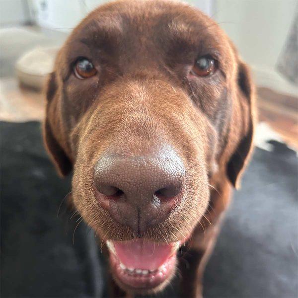 Hi people. My name is Delilah. At six years of age, after birthing and raising countless litters, I found myself dumped. Despite that, I have a loving, forgiving heart that I am anxious to share. I had a pretty sad face when I arrived, but my foster people figured out how to turn that frown upside down! I am living with another dog. We share toys, beds, and people well. I like most friendly dogs but can’t say if I ever met a cat so I’m not sure about those fuzzy things. I think human kids would be swell. I certainly know how to help them grow! Lots of things are still new to me…like dog beds, people who love on me, walks, and potty outside. I am taking them to them well – even the last one, although I have had a couple slip ups. Like puppies, just stay on top of me and take me out often. I have never had formal training, but I am easy to manage. I’m a little zig-zaggy when walking, so I will need sure-footed people who won’t be tripped up by me! When I get overwhelmed by all these things that are new to me, I tend to shut down. I’m not being stubborn or unwilling. I just need some time, patience and for you to show me it’s OK. I can also be a little insecure about being left alone. For this reason, my foster mom and I have worked on crate training. Now I know it is only for a little while.