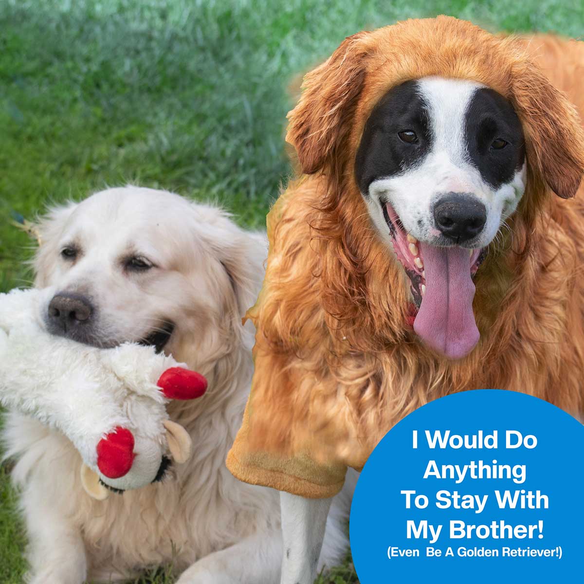 Marty here…speaking on behalf of myself and my sibling sister, Piper. We are the original odd couple…but a bonded couple we are…and we are very much hoping to stay together. We have lived together our whole lives but lost our humans when elderly people had to move in. It turns out that they can tip over easily and require a lot of care. We are still young and spry – and – judging by my weight – we got too much of the food attention and not enough of the exercise attention! We are both very social pups who get along well with other nice dogs. We both love kids, have good house manners, walk well on leash, and were taught all the basic skills. Neither of us can recall meeting a cat so that’s an unknown for us. I am a five-year-old, chill, friendly, and calm boy. At 114 pounds, I could use a little more of Piper’s energy! The people say that frequent short walks and strict adherence to my diet will help me get there. Piper is a four-year-old Lab and possibly Pointer-mix. She is a joyful, playful girl who has always looked up to me for reassurance and to boost her confidence. Together, we entertain ourselves well. Separately, she is constantly searching for me. I really hope I don’t have to leave her behind. Piper says she is willing to do anything to stay together…including pretending to be a Golden Retriever if you need that. It wouldn’t be hard…she already has a Golden heart. Do you have room in your home and heart for a ready made fur-family? Come get us! We’re excited to meet you!